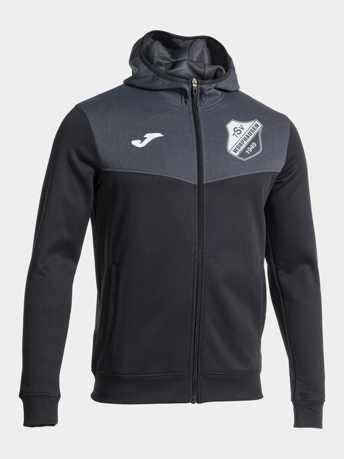 Sweatshirt mit durchgehendem Reißverschluss. Mit elastischer Kapuze, Rippbündchen an Ärmeln und Saum und zwei Fronttaschen. Hergestellt aus Fleece-Innenmaterial. Aufgesticktes Joma Logo.